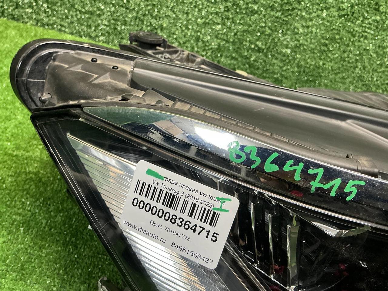 0000008364715. Обмен и возврат в течение 14 дней. Фара правая VW Touareg 3 (2018-2023) LED Фара головного света правая диодная, светодиодная Стекло фары правое Корпус фары правый Номер указанный на запчасти: 761941036B Фольксваген Туарег 3 , Volkswagen Touareg Фольцваген Фольксваген (Фольсваген) Туарег 3 Тоуарег 3 Деталь может подойти на автомобили: 2018 2019 2020 2021
