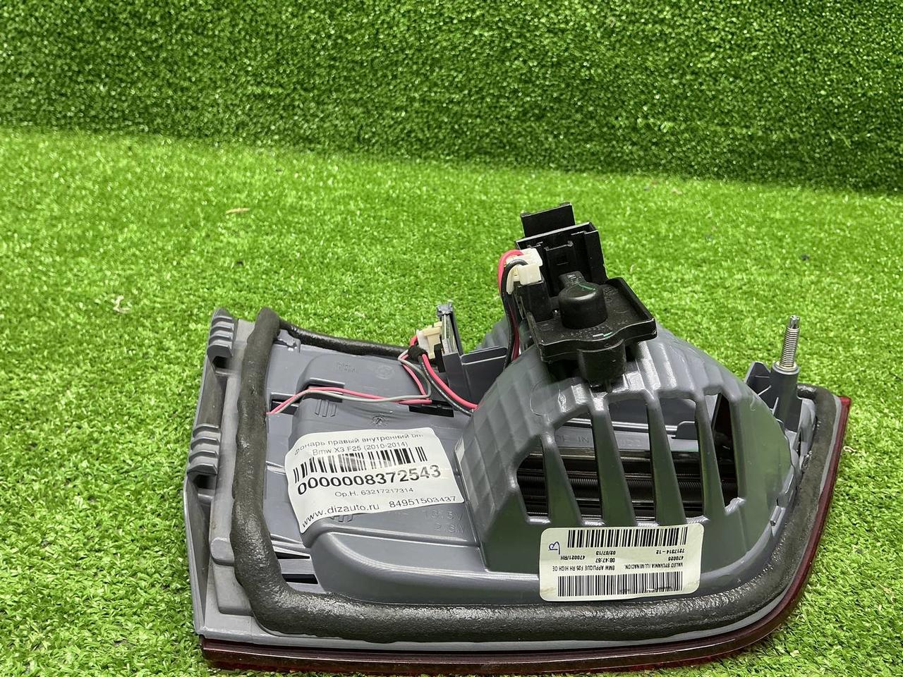 0000008372543. Обмен и возврат в течение 14 дней. Фонарь правый внутренний BMW X3 F25 (2010-2017) Фара задняя правая в крышку багажника Стоп сигнал задний правый внутренний Номер указанный на запчасти: 721731412, 7217314-12 BMW X3 F25, BMW X3 F25 БМВ Х3 (Х X 3) Ф25 ( Ф F 25) Деталь может подойти на автомобили: 2010 2011 2012 2013 2014 2015 2016 2017