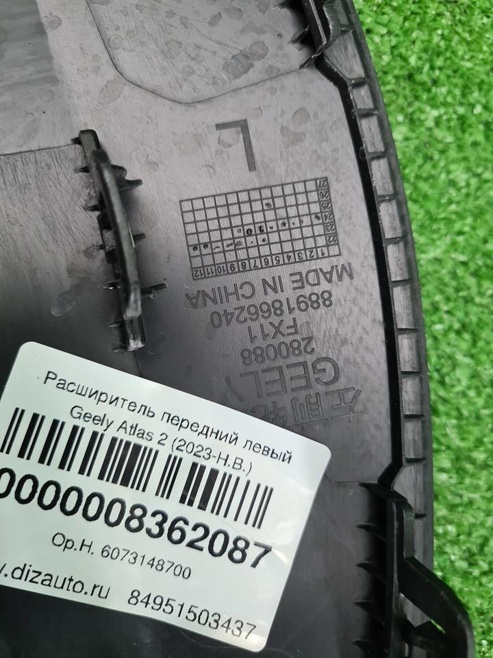 0000008362087. Обмен и возврат в течение 14 дней. Расширитель передний левый Geely Atlas 2 (2023-н.в.) Накладка арки крыла передняя левая Молдинг крыла передний левый Номер указанный на запчасти: 8891866240 Джили Атлас 2, Geely Atlas 2 Деталь может подойти на автомобили: 2023 2024 2025